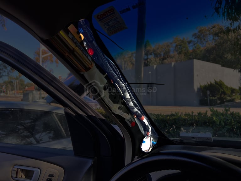 Paul reached out to us with a troubling issue—his dash cam in his 2009 Honda Pilot kept turning on and off randomly. Our technician arrived for an assessment and quickly discovered the problem: the previous installation was not only faulty but dangerously unsafe. The hardwire kit was improperly connected, and worse, the wiring was routed directly in front of the airbags, which could have prevented them from deploying in a crash.