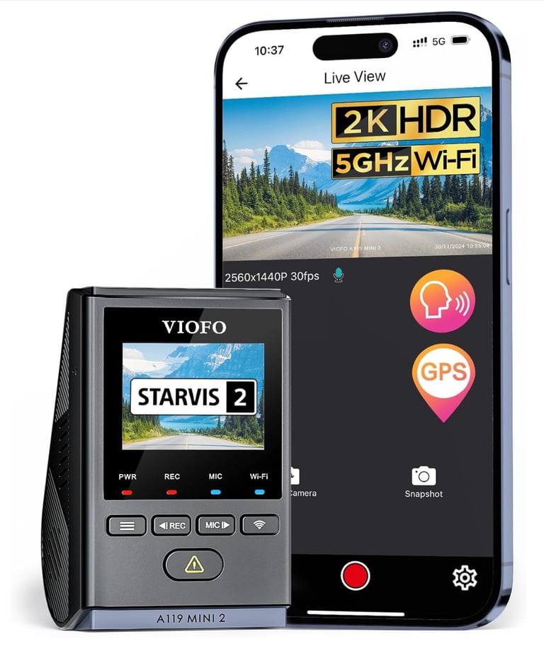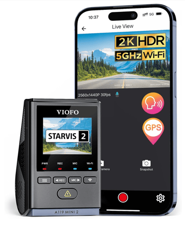 The Viofo A129 Mini 2 delivers sharp 2K QHD resolution in a sleek, compact design. With a Sony STARVIS 2 sensor, it captures clear footage day and night. Built-in Wi-Fi, Bluetooth, and GPS make file transfers and tracking effortless.