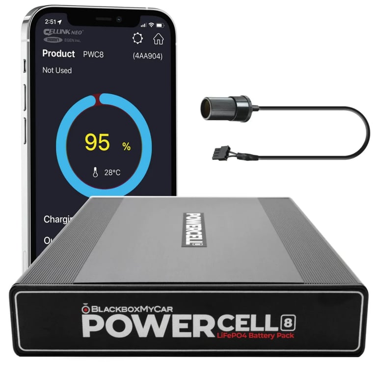 The PowerCell 8 is a dash cam battery designed, tested, and backed by BlackboxMyCar. This LiFePO4 battery is engineered and assembled in South Korea.
