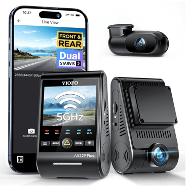 The Viofo A229 Plus is a high-performance dual-channel dash cam featuring 2K QHD (1440p) front and rear recording, ensuring sharp and detailed footage. It uses Sony STARVIS 2 sensor for excellent low-light performance and offers Wi-Fi connectivity, GPS tracking, and advanced driver-assistance features like parking mode and collision detection. With supercapacitor power, it provides better durability in extreme temperatures compared to battery-based models. Ideal for drivers looking for a reliable and high-quality dash cam with enhanced security features.